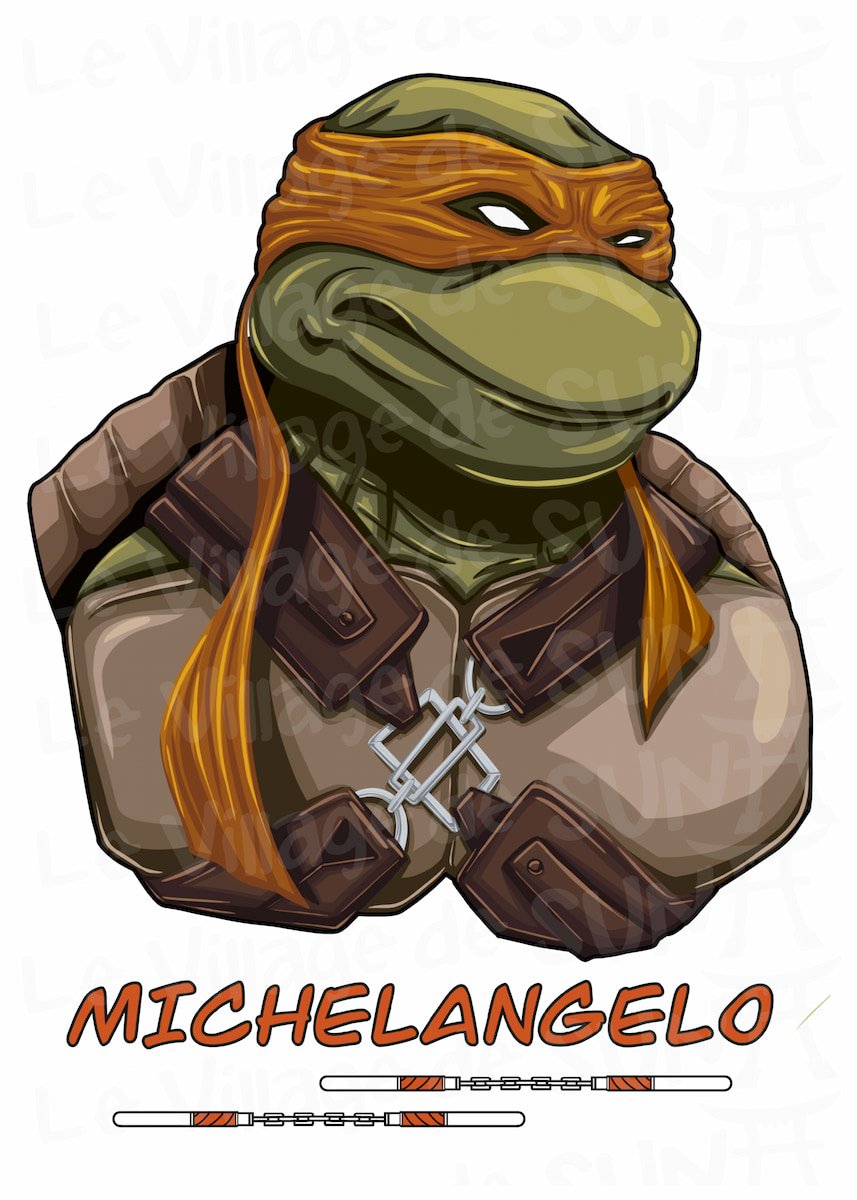 Plongez dans l’univers des Tortues Ninja avec cette illustration originale de Michelangelo. Ce dessin est une création exclusive, pensée pour les fans de pop culture.